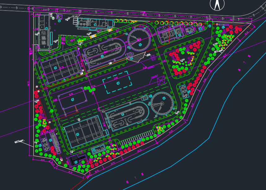 工程内容:(1)按总规模5.0万m3/d新建中间提升泵池、磁混凝沉淀池、深床反硝化滤池、消毒接触池及加药间、出水提升泵房。(2)按扩建规模3.75万m3/d,变化系数1.64,处理能力6.15万m3/d,新建粗格栅及进水泵房、细格栅及曝气沉砂池、Bardenpho生物池及污泥泵池、矩形二沉池、巴氏计量槽、除臭设施,新建变电站等。(3)在现有鼓风机房增加2台风机,并更换1台鼓风机。(4)迁建现有进水泵房配电间。(5)改造现有单体与新建单体之间的各种连接管线,修复绿化、路灯、厂内道路等。