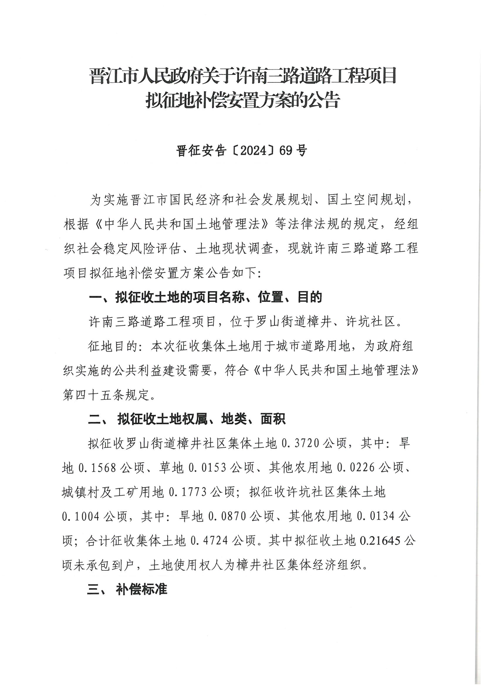 关于许南三路道路工程项目拟征地补偿安置方案的公告
