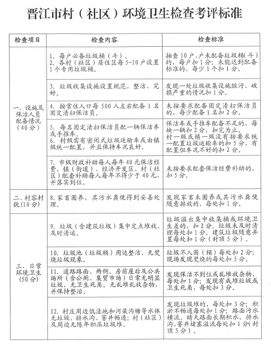 6. 晋江市村(社区)环境卫生检查考评标准
