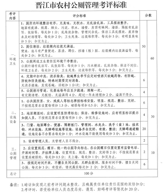 8. 晋江市农村公厕管理考评标准