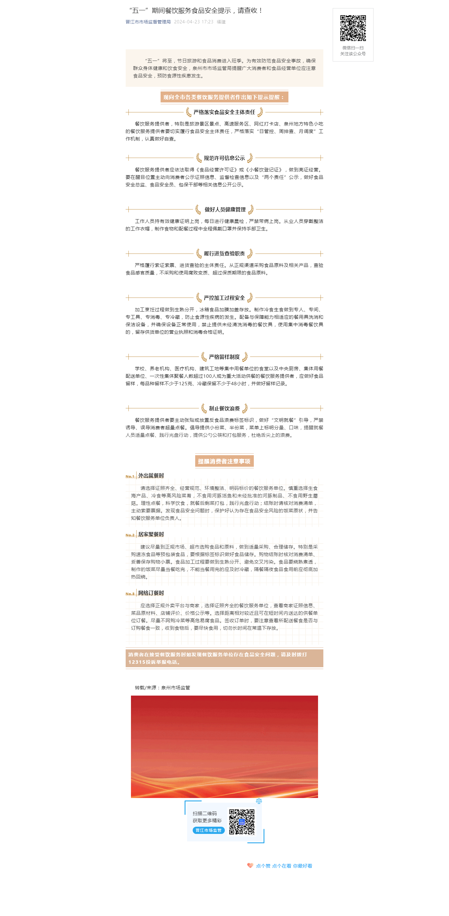 【消费提示】“五一”期间餐饮服务食品安全提示
