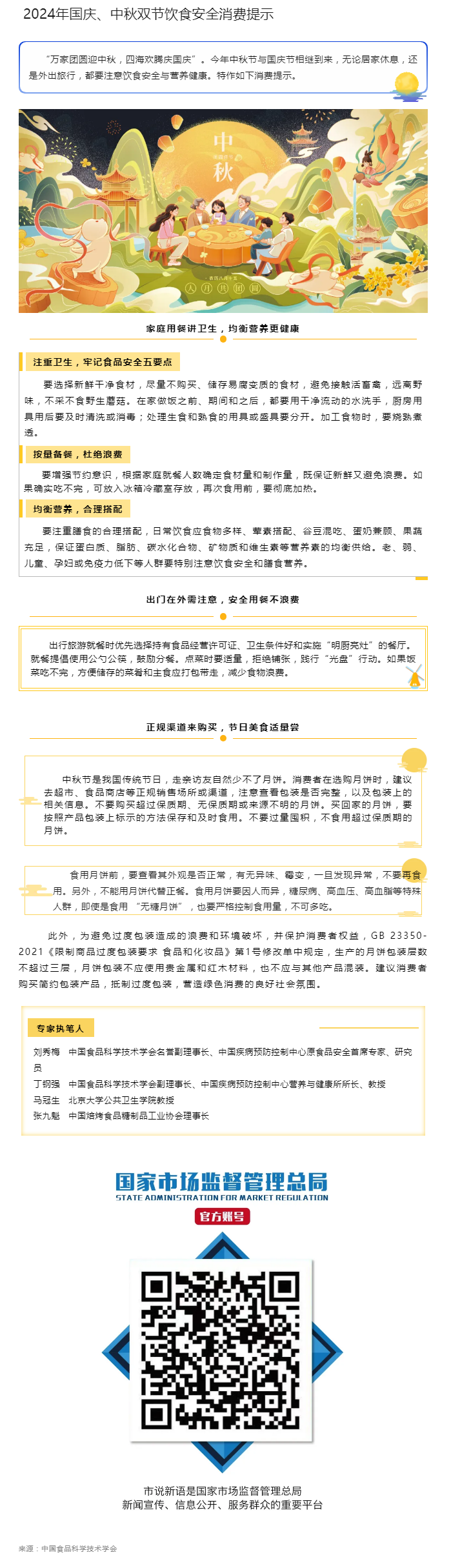【消费警示】2024年国庆、中秋双节饮食安全消费提示