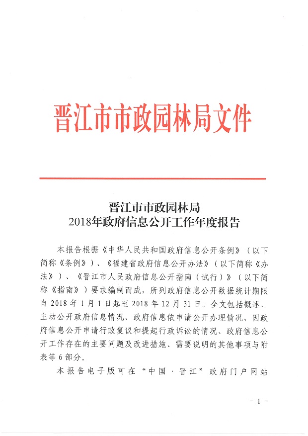 晋江市市政园林局2018年政府信息公开工作年度报告