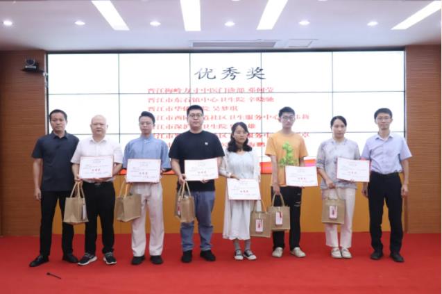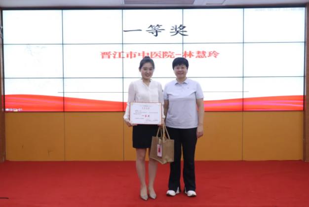 晋江市卫健局党组书记、局长蔡婉浈为“一等奖”获得者颁奖