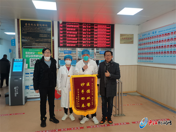 “住院期间,老人病情反复、危急,我们作为子女心急如焚。但施医生总是耐心地解释并不断地安慰我们,我们深受感动。”肖先生告诉记者,他是深沪镇的一名中学老师,被施医生高尚的职业道德和救死扶伤的精神感动,他特意制作了锦旗送来。